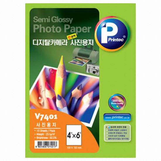 포토용지 / 규격:4x6 / 용지평량:251g / 용지구분:잉크젯전용 / 유광택 / 백색